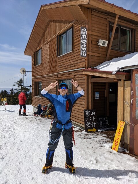 私は勘違いしていたのだ。流石13の岩峰を持つ西穂高。自然が作り出したこの鋸のような造形物に驚愕する。と同時に認めたくはない自分自身の若さゆえの過ちを反省し先を急ぐ。紆余曲折を経て本当の山頂直下雪壁へと取り付いた。結構斜度がある。そこで脚の筋肉に尋ねた。「君たち、もっと負荷が欲しいかい?」すると自分の体内で小宇宙(コスモ)が燃え上がってくるのを感じた。答えはイエス。進め、ミラクルストライド!