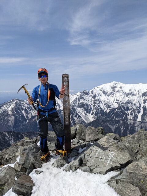 アドレナリンを放出し逸る気持ちを抑えながら登っていくと「西穂高岳二九〇九M」と書かれた木標が見えた。遂に立った。その頂からは12色パレットでは到底描くことが出来ない神々しく、畏敬の念すら抱かずにはいられない北アルプスの稜線が広がっていた。