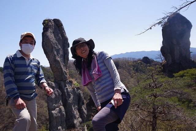 2021年04月22日 上州 御堂山ババ岩・ジジ岩 2021年4月15日 木曜日天気 晴れ参加者 鶴見・星野(康)・浅井・石原9時30分 登山口11時45分 展望ポイント ジジ岩・ババ岩11時30分 御堂山山頂13時 登山口平日の定例山行日。久しぶりの星野さんの参加。今回の山行のメインは、じじ岩・ババ岩の奇岩の展望です。天気も良く展望ポイントより奇岩がよく見えました。今にも倒れてしまいそうです。荒船の湯に入り帰途に着く。 「西上州」カテゴリの最新記事